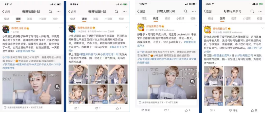 随即更有大量美妆优质达人发博种草产品效果,诠释“底妆即底气”产品态度,触达1500W+美妆圈层粉丝。随着#哪里来的底气#话题登榜热搜,微博企划旗下种草类大账号@微博牧场计划、@好物无限公司、@萌草菌 也纷纷转发种草VLOG,助推话题扩散传播,吸引了更多电商兴趣人群的参与与讨论。
