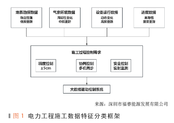 电力工程施工数据具有典型的多源异构特性,涵盖地质勘探数据、气象环境监测信息、设备运行状态参数、施工作业进度数据等多个维度。如图1所示,不同类型数据在时间尺度上呈现差异化特征,地质数据具有相对稳定性,而设备状态数据则表现为高频动态变化。施工过程中的控制需求主要体现在作业精度控制、设备协同控制、安全风险控制三个层面,传统的基于经验的控制方式已无法适应复杂多变的施工环境,数据驱动控制需求迫切。数据标准化处理与特征提取成为控制系统设计的关键环节。