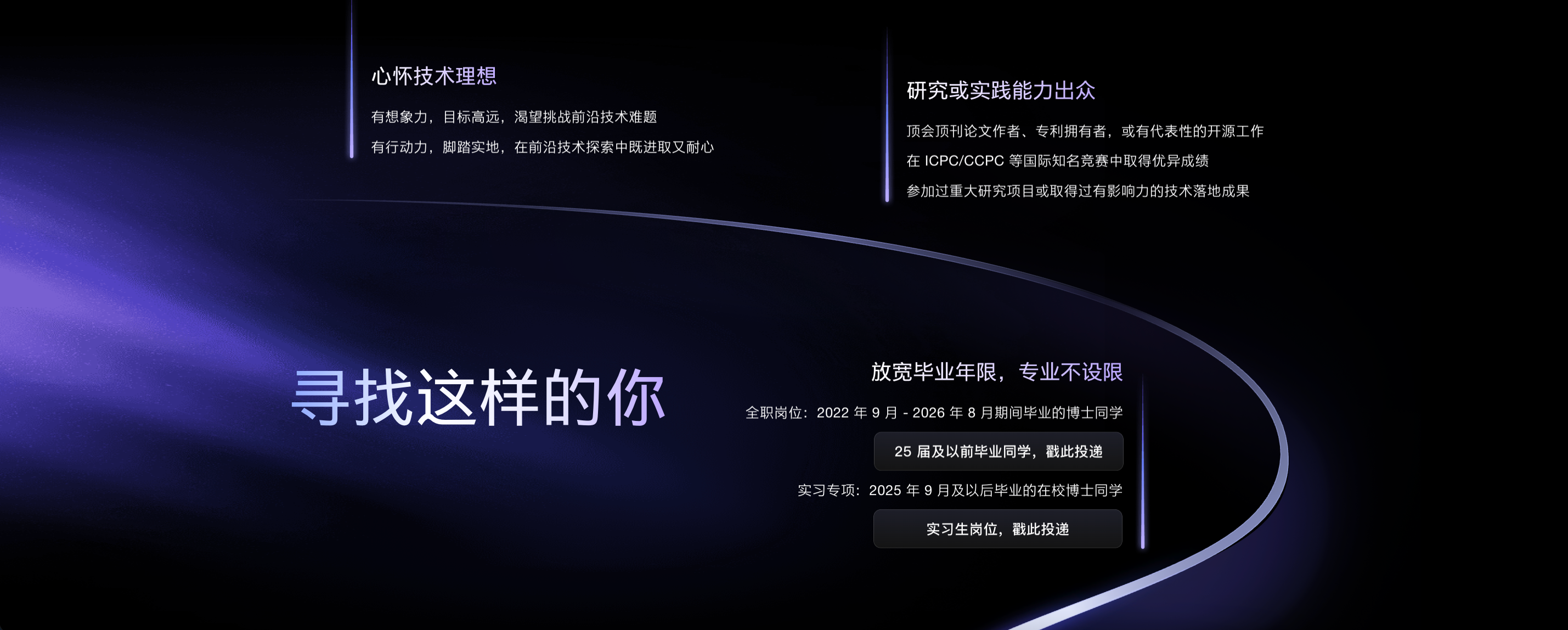 今年的招聘在不限专业的基础上,大幅放宽目标博士生群体的毕业年限,全职岗位面向2022年9月至2026年8月期间毕业的博士生,2025年9月及以后毕业的在校博士同学可以投递实习岗位。“不对专业做限制,不因工作年限卡定薪定级,欢迎有探索前沿技术想法的你投递。”字节跳动官方微信公众号称。