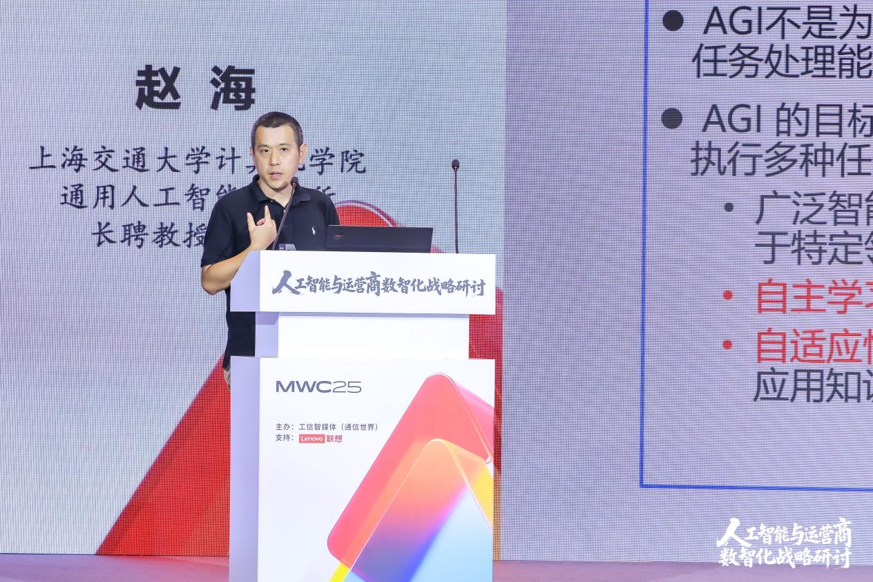此外,上海交通大学计算机学院通用人工智能研究所长聘教授、所长赵海从学术层面对人工智能大模型、AGI发展进行了全面的阐述。