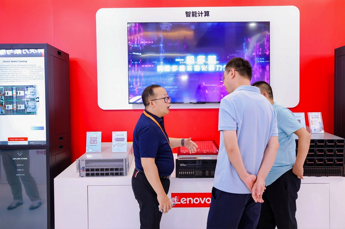其中AI基础设施方面,聚焦智算、高性能计算与通算三大计算场景,联想展出了覆盖全场景的领先算力基础设施产品、解决方案,并带来了全球领先的相变浸没式液冷技术;而围绕AI终端和AI解决方案及服务,天禧个人超级智能体、创新AI终端、智算中心、智能体矩阵等也圈粉无数,吸引了众多嘉宾与客户驻足交流。