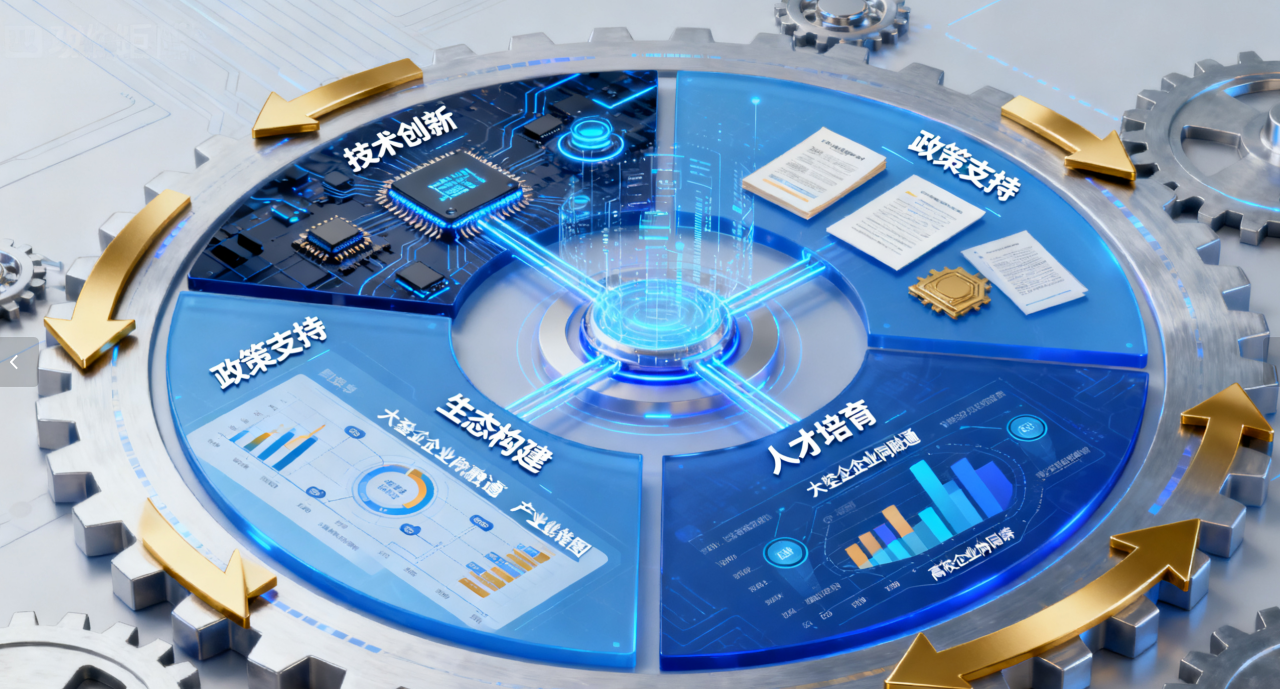 针对这些挑战,需从技术、政策、生态、人才四个维度协同发力。在技术创新上,发挥新型举国体制优势,推动高校、科研院所与企业联合攻关,突破工业软件、高端芯片等"卡脖子"技术,同时依托超大规模市场优势,加快新技术商业化应用。在政策支持上,强化财政、货币、产业政策统筹,设立专项基金降低转型成本,完善知识产权保护制度激发创新活力;在生态构建上,培育专业化服务商队伍,建设场景库与案例库,加速经验复制推广;在人才培育上,构建"高校+企业+政府"的协同培养体系,解决数字技术人才与产业需求脱节的问题。