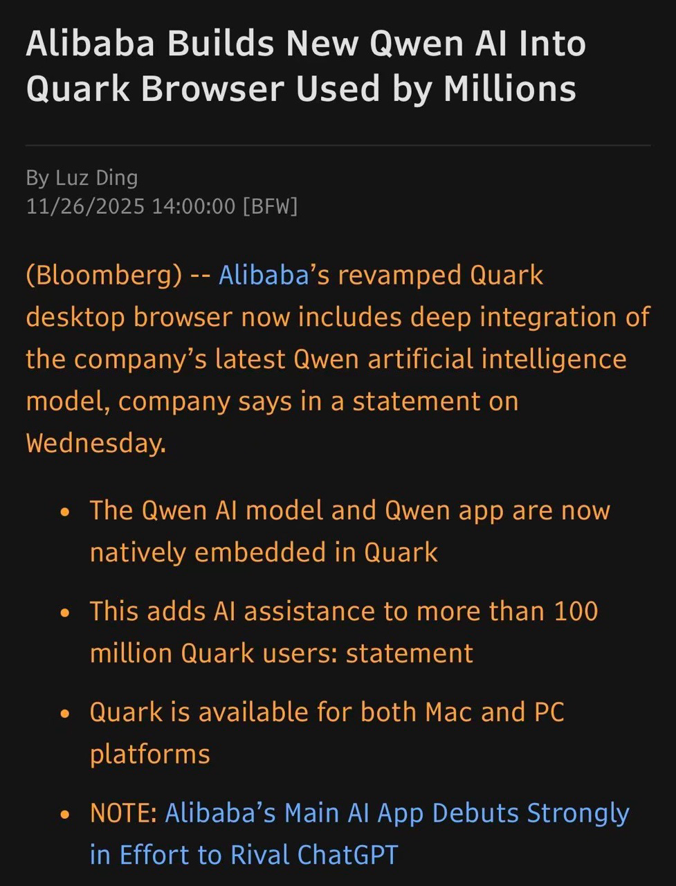 【雷竞技app下载安卓 讯】11月26日消息,彭博社报道,阿里巴巴千问应用程序现已原生嵌入夸克浏览器,此举将为超过1亿夸克电脑端用户增添AI辅助功能。在Mac与PC端,全新的夸克浏览器均可支持。此前,千问App表现强劲,旨在与ChatGPT展开竞争。