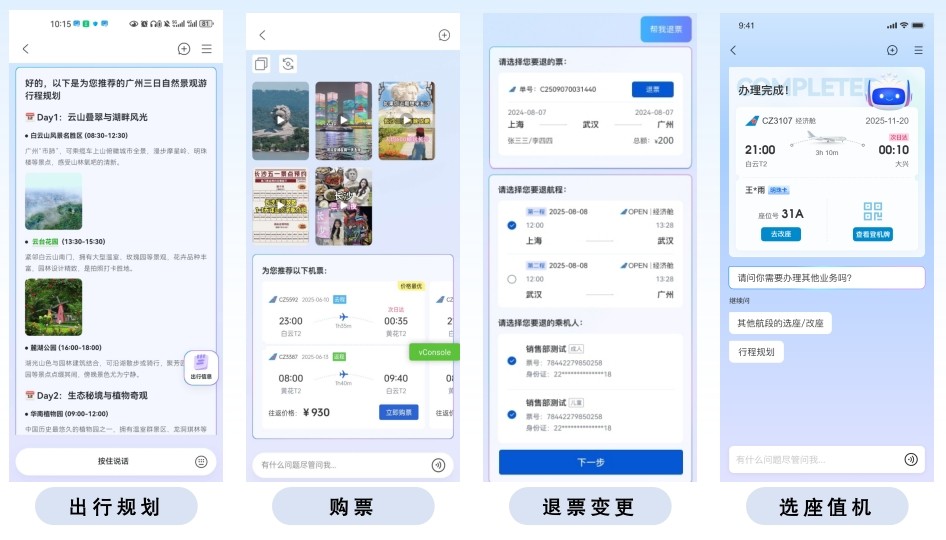 在行前阶段,系统可根据旅客偏好智能推荐航班、自动规划个性化行程;行中遇航班变动,可即时提供解决方案实现退改;行后,则支持航旅资产管理与场景化服务引导,真正实现出行服务闭环体验。