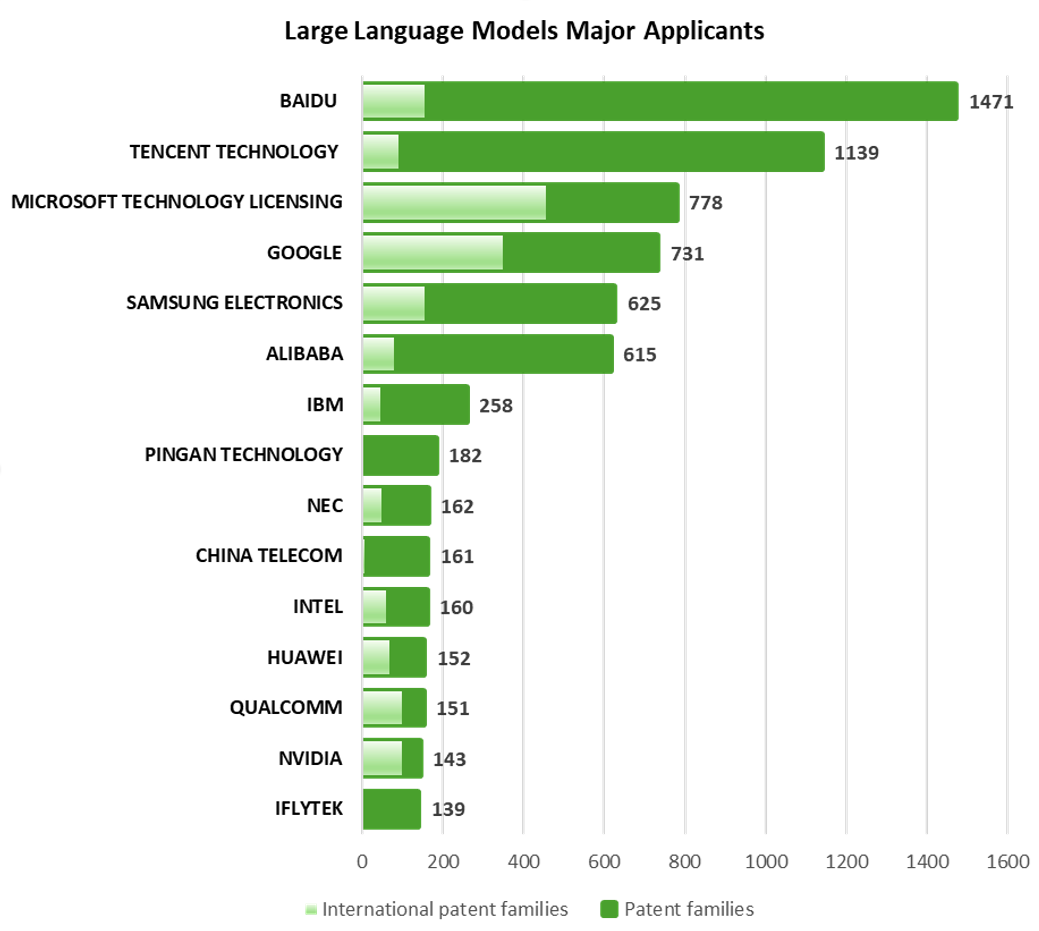 在大模型领域,百度以1471件专利申请量,从去年全球第二跃升至全球第一,引领大模型基础创新。