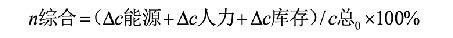 式中:n综合为综合成本降低率;ΔC能源、ΔC人力、ΔC库存为成本节约额;C总0为应用前年度总运营成本。