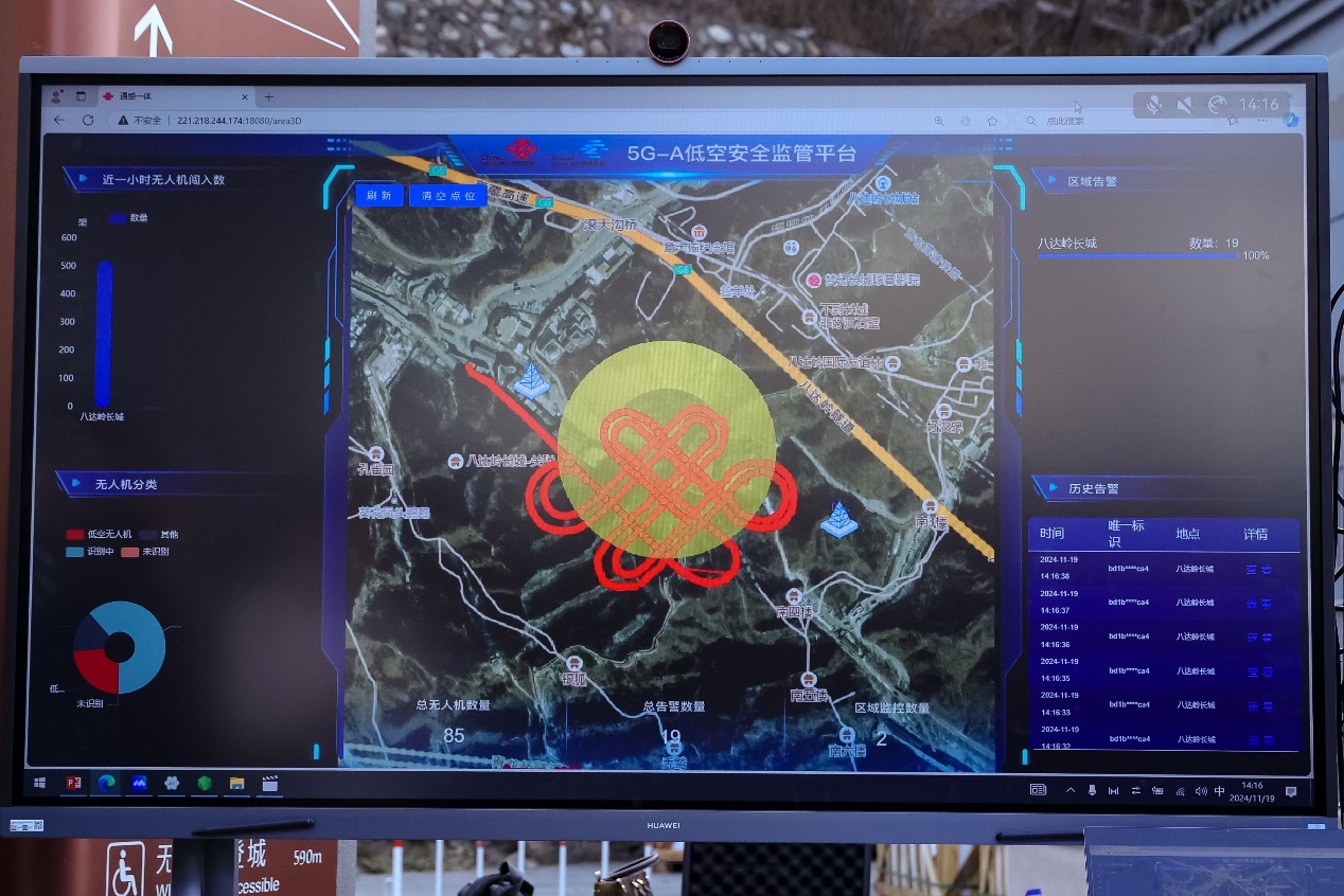 近日在北京举行的“5G Capital路上见——5G-A全城点亮”活动上,北京联通与北京延庆区政府合作,在长城景区部署了业界首个5G-A万兆天地一体规模组网示范,打造了“5G-A低空经济创新基地”。