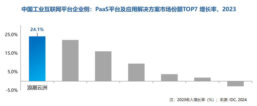 近日,国际数据公司(IDC)发布了2023年《中国工业互联网平台政府侧:区域平台及产业公共服务市场份额》及《中国工业互联网平台企业侧:PaaS平台及应用解决方案市场份额》报告。报告显示,2023年,浪潮云洲位居中国工业互联网平台政府侧市场份额第一,企业侧市场份额增速第一、全国前三,实现了在中国工业互联网平台政企市场份额全面领先。