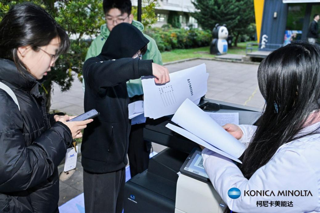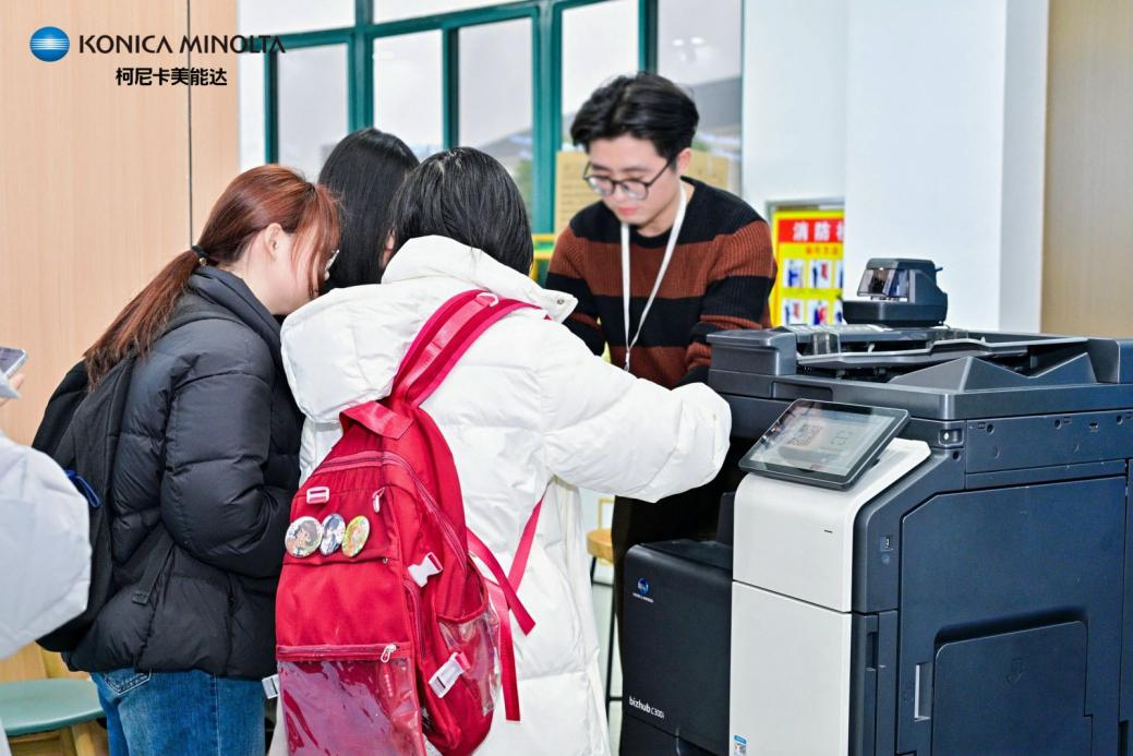 活动中,同学们纷纷驻足于柯尼卡美能达数码复合机前,体验扫码自助打印的便捷与高效。学生们无需再为转存文件、担心病毒感染而烦恼,只需轻松一扫,学习资料、彩色文档即刻呈现。柯尼卡美能达旗下bizhub i系列彩色数码复合机(以下简称“彩色数码复合机”)的出色表现,更是赢得了同学们的一致好评,其稳定的输出品质和便捷的操作体验,让每一次打印都成为了一种文印享受。