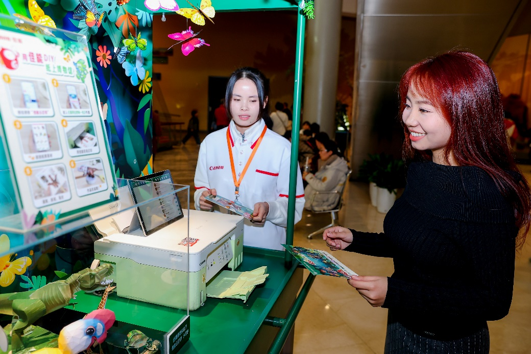 随后,学生们的行程延伸至上海自然博物馆,参与了佳能与博物馆联合举办的“趣寻自然每一色”活动。在佳能展台前,学生们深刻感受到了科技与自然的和谐共融。佳能在这里展现了“共生”的企业理念,将自身的打印技术、产品及服务优势运用于公益事业,在展现企业社会责任的同时,也彰显了佳能的技术在环境保护和文化传承中的实际应用。