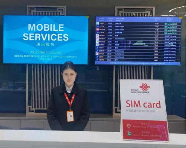 为入境旅客打造更为便捷、多元的服务体验,北京联通在首都国际机场与北京大兴国际机场均设立联通营业厅,在服务能力上,不仅涵盖话费充值、号码办理等基础通信服务,还贴心提供双语使用指南及套餐宣传资料。此外更推出一系列增值服务:如旧卡包装袋以防遗失,备用手机保障紧急通讯,老花眼镜方便视力不佳旅客,以及医疗急救包为长途飞行或身体不适的旅客保驾护航。