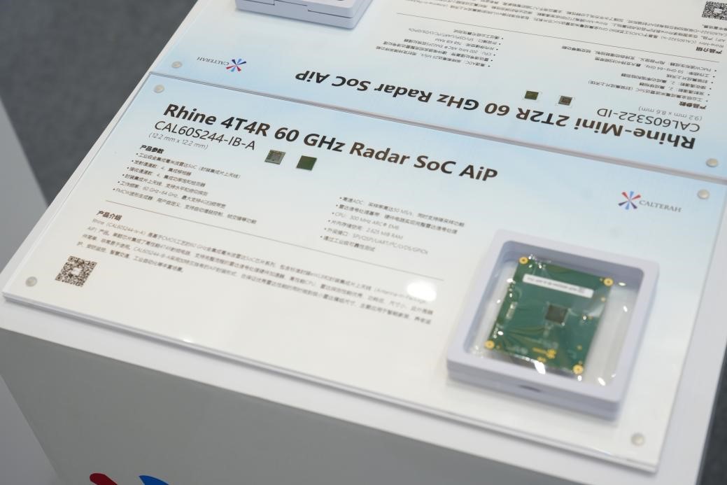 在展会现场,加特兰展示了其卓越的硬件产品——采用CMOS工艺的60 GHz全集成毫米波雷达系统单芯片系列,包括4T4R标准封装和4T4R封装集成片上天线(AiP)的Rhine系列SoC芯片,以及采用2T2R的Rhine-Mini系列SoC AiP产品。这些芯片工作频率范围为59 GHz至64 GHz,最大支持4G扫频带宽,采样率高达50 MS/s,同时支持降采样功能,展现了毫米波雷达在精准度和效率方面的卓越性能。