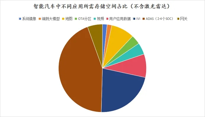 智能汽车中不同应用所需存储空间占比(数据来源:美光)