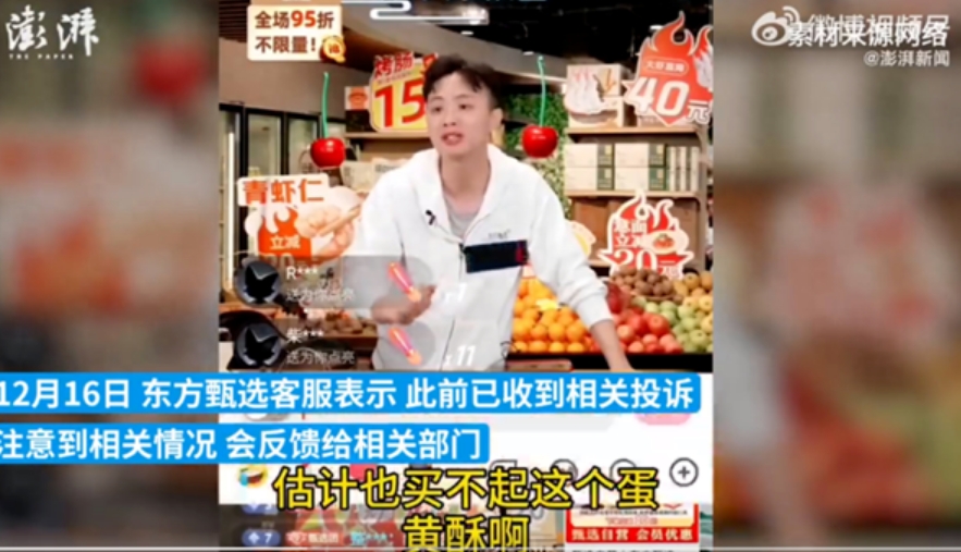 从去年底东方甄选直播间风波不断,到 “ 小作文 ” 事件到临期食品风波,再到旗下主播天权直接爆典:“ 你们刷临期的这那些人,估计工资也买不起蛋黄酥 ” 。