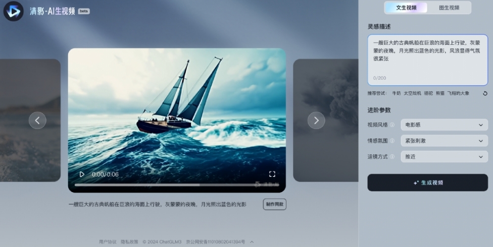 今日,智谱AI CEO张鹏在智谱Open Day上宣布,AI生成视频模型清影(Ying)上线智谱清言,生成6秒视频只需要30秒的时间。即日起所有C端用户,都能通过清影(Ying)体验到AI文生视频、图生视频能力。