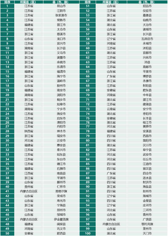 研究发现,百强县成为重要增长点。百强县与“粤苏浙 鲁”等经济强省在总体规模、进出口总额、社会消费品零售 总额、固定资产投资额等指标比肩,二产增加值超过“粤苏 浙鲁”等经济强省;“富民”与“强县”并重。百强县人均可 支配收入占人均 GDP 比重高于全国平均水平。