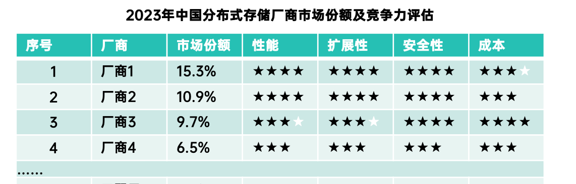中国分布式存储厂商竞争新态势表现为“替代”与“难以替代”交织。受益于数实融合、数据要素市场化等利好因素,2023年,中国分布式存储厂商普遍竞争力较强。在各细分市场上,中国厂商依托自身对与产品、行业、场景的深入理解,产品表现基本可比肩国外产品。与此同时,仍存在某些垂直领域,由于技术壁垒较高等原因,中国分布式存储厂商尚未展示较强的竞争力。