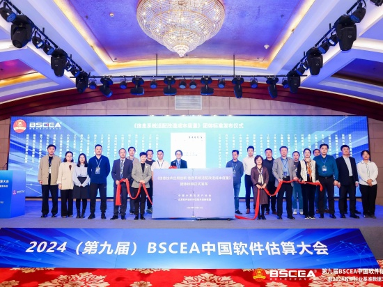 由中国计算机用户协会、北京软件造价评估技术创新联盟联合研制的团体标准《信息技术应用创新 信息系统适配改造成本度量》,于2024年10月31日在2024(第九届)BSCEA中国软件估算大会上正式发布。中国计算机用户协会副理事长兼秘书长唐群、副理事长兼标委会主任胡帆,北京软件造价评估技术创新联盟理事长王青、首席专家王海青,以及北京中基数联科技有限公司、苏州市软件评测中心有限公司、北京科信深度科技有限公司、北京赛迪时代信息产业股份有限公司、浙江省经济信息中心、中国邮政储蓄银行、恒丰银行股份有限公司、中国交通信息科技集团有限公司、国家能源集团国际工程咨询有限公司、云南电网有限责任公司信息中心、中移动信息技术有限公司、北京金山办公软件股份有限公司、北京宝兰德软件股份有限公司等部分标准起草单位代表共同参加发布仪式。来自全国各地的行业用户单位、科研院所、第三方服务机构专家代表近500人现场见证。