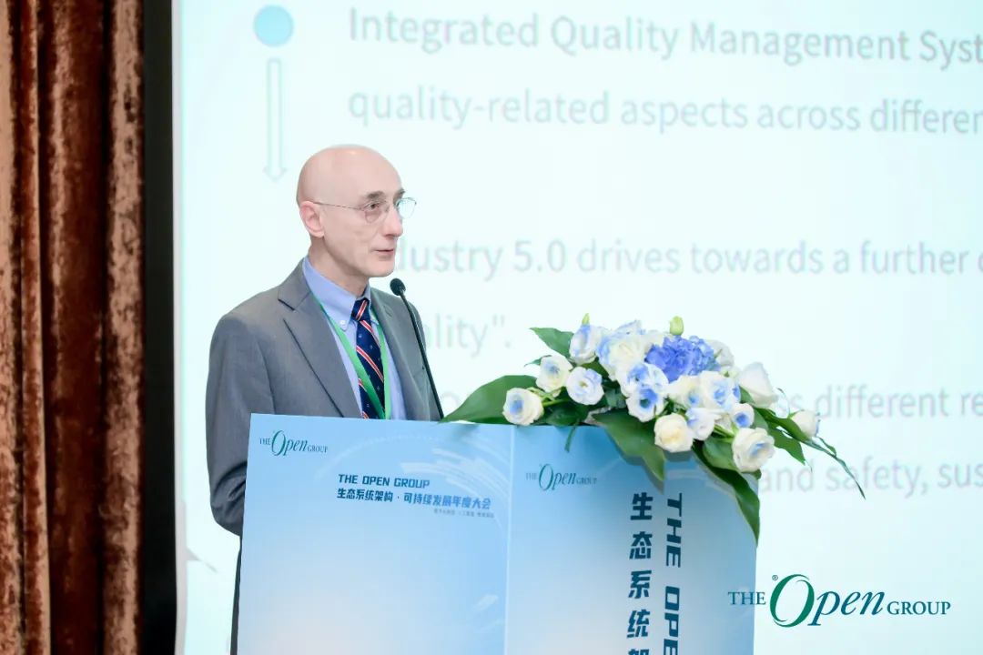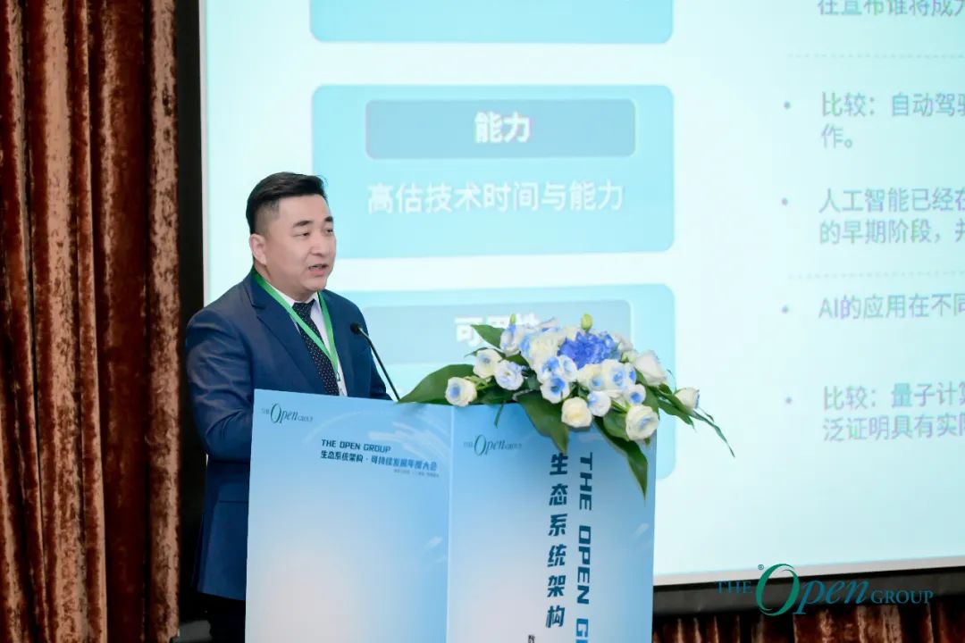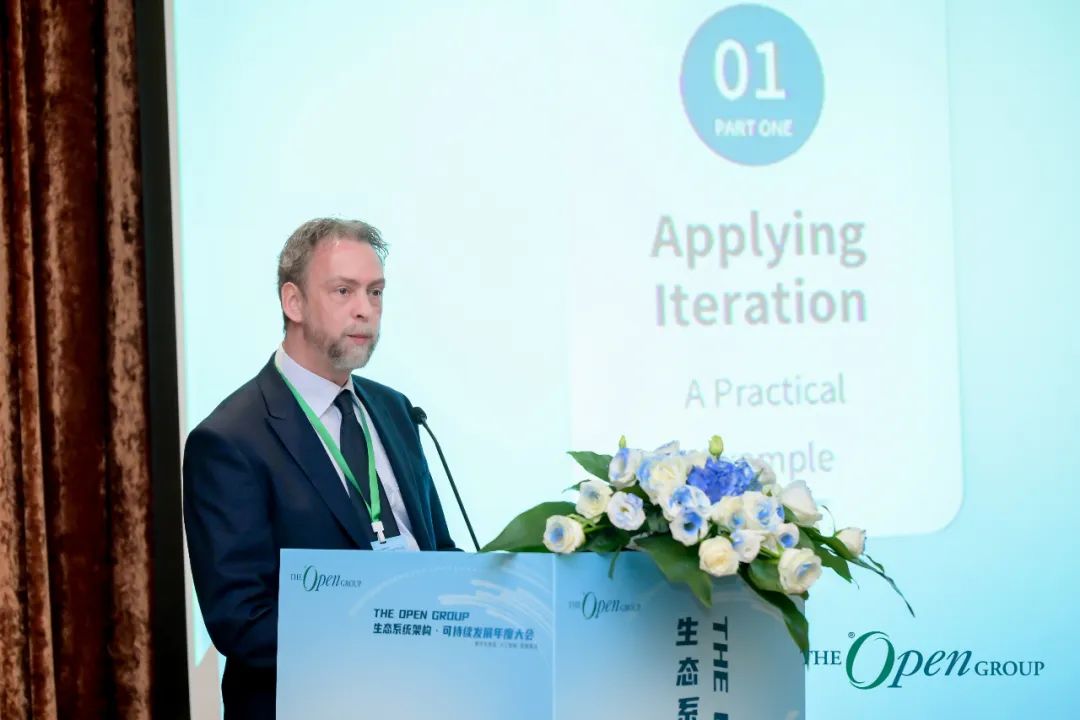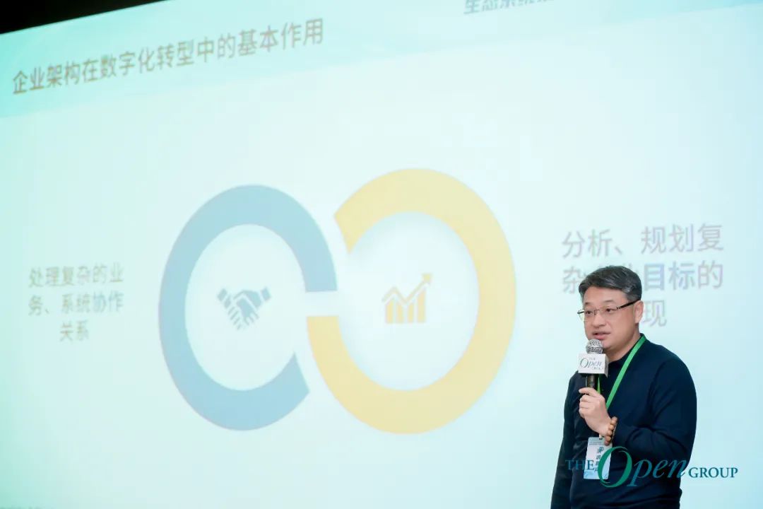The Open Group全球企业架构(EA)副总裁兼亚太区总经理 Chris Forde先生是全球企业架构领域的权威,他在推动TOGAF®标准、O-AA™开放敏捷架构标准和ArchiMate®建模语言的发展中发挥了关键作用。作为架构学科和技术标准的领导者,他在致辞中提到,数字化生态的未来充满了未知,但正是这种未知给了我们无限的可能性。企业架构作为连接战略与执行的桥梁,将在这一过程中发挥不可替代的作用。我们需要充分利用TOGAF®等国际标准,结合自身的实际情况,构建适合自己的架构体系。