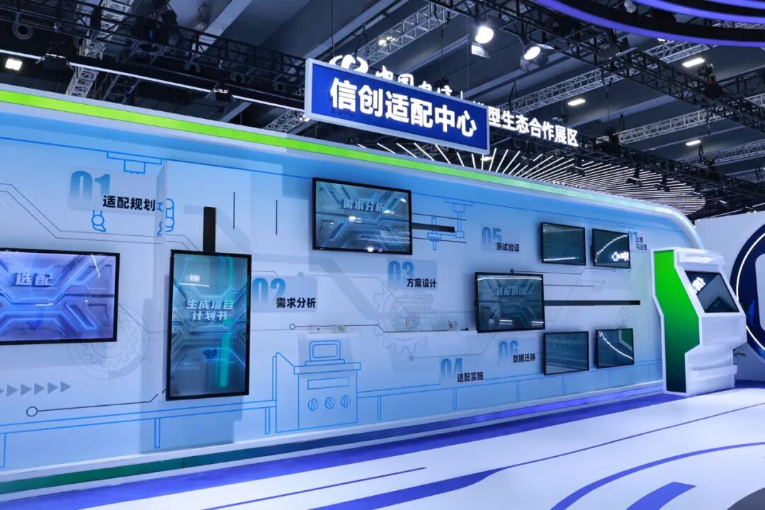 作为信创成果的展示窗口与衔接行业实践的桥梁,电信数智在展区结合凹凸互动LED屏、视频滑轨屏、数字沙盘等丰富形式,系统解读中国电信全栈信创能力、信创适配中心及标杆案例,吸引众多观众驻足了解。
