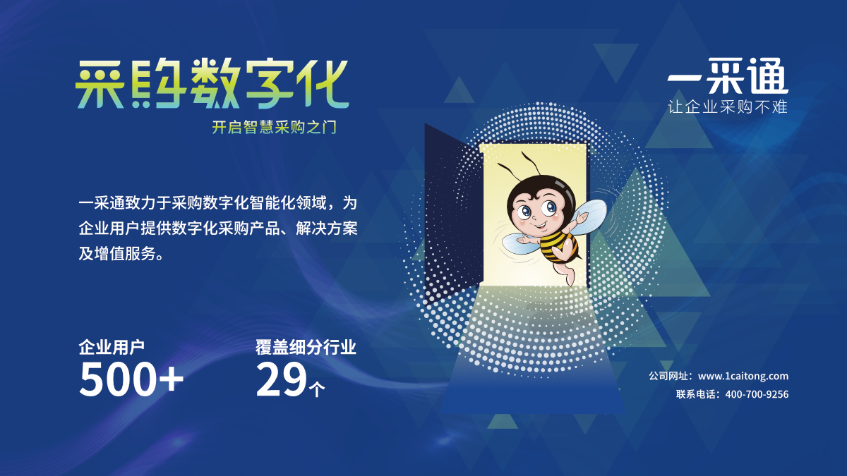 一采通数字化采购产品,为企业提供“全流程、全品类、全天候”的数字化采购环境构建的最佳实践。