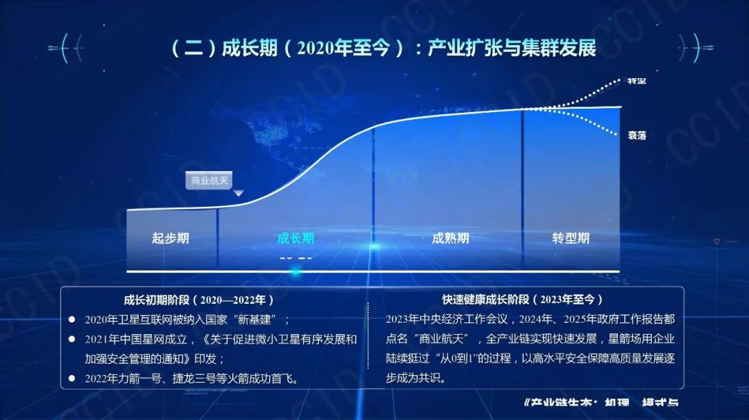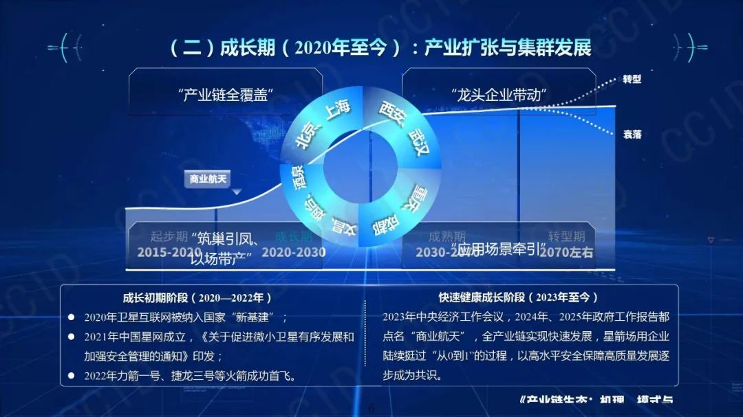 赛迪研究院军民所[商业航天研究中心(筹)]日前在2025赛迪论坛发布《“十五五”商业航天发展思路与路径》。报告表示,我国商业航天产业链生态已进入成长期。“十五五”时期推进商业航天高质量发展重点要统筹好“五对重要关系”:一是民用航天与商业航天的关系;二是高水平安全和高质量发展的关系;三是有效市场和有为政府的关系;四是服务国家战略与实现商业盈利的关系;五是国家队和民间队的关系。同时提出,践行新型工业化发展路径、完善商业航天产业链生态是“十五五”时期消除内外部压力、实现高质量发展的根本出路。建议:准确把握商业航天发展阶段和趋势特征,以安全健康发展为主基调,以供给侧结构性改革为主线,以全链条提质降本增效为导向,以产业筑基、创新铸魂、数字赋能、绿色转型、品质革命为路径,推动商业航天又好又快发展。