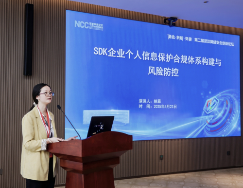 在本次大会的“个人信息保护分论坛”活动上,极光法律合规总监姚菲发表了题为《SDK企业个人信息保护合规体系构建与风险防控》的主题演讲。姚菲指出,SDK企业面临严格的合规监管,需遵循多部法律法规和行业标准。公司可通过搭建完善的合规组织架构,建立健全合规管理制度体系,对SDK进行全生命周期运营管理,强化员工培训等措施构建合规管理体系。在风险防控方面,开展合规自评估,进行动态追踪与响应,引入第三方评估,并加强与监管部门协同,提升企业合规透明度,保障SDK个人信息安全。