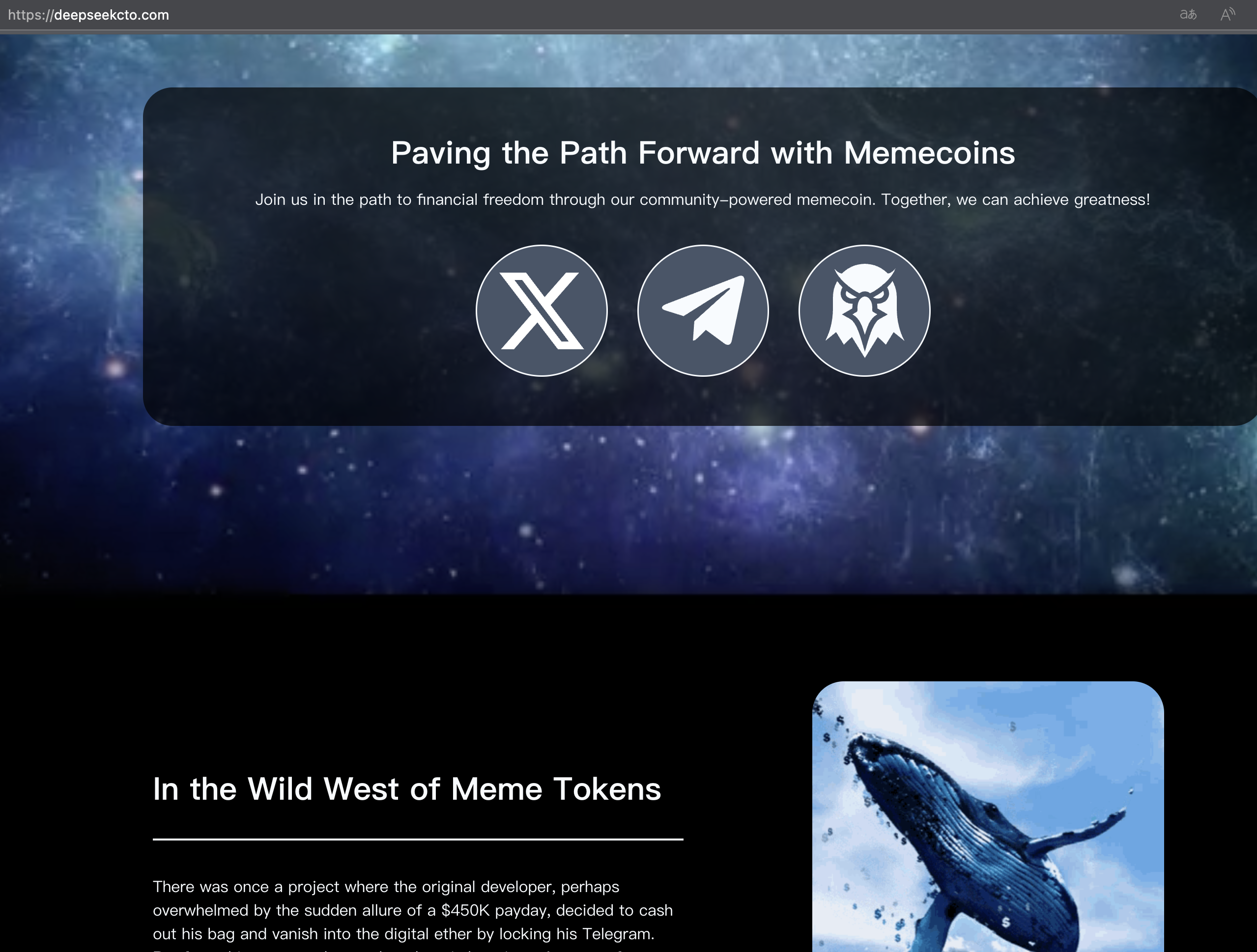 这类模仿现象,有的可能只是出于商业目的,想借助 DeepSeek 的热度售卖有前途的域名或者吸引用户;但也有不少恶意行为者,利用相似的域名和界面来误导用户,甚至传播恶意软件、窃取个人信息或骗取订阅费用。除此之外,骗子紧跟技术潮流,利用市场的兴奋情绪,还推出了所谓“DeepSeek 加持”的各种高大上功能的空气币(无实质价值的虚拟货币)。这种模式与过往许多科技爆款(如 ChatGPT)在爆火后迅速出现大量仿冒和诈骗的趋势高度相似。