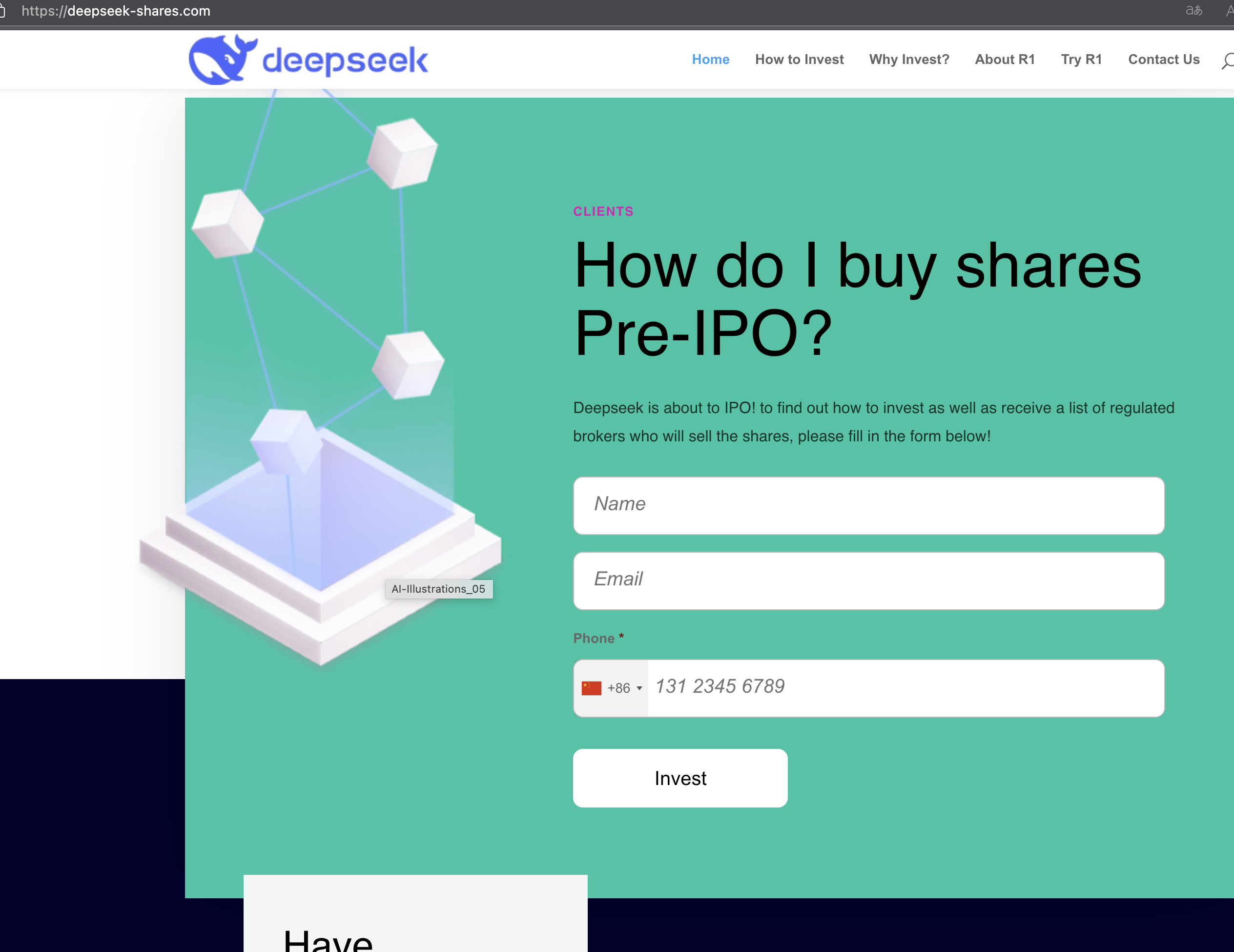 宣称可以抢先购买deepseek原始股的诈骗网站