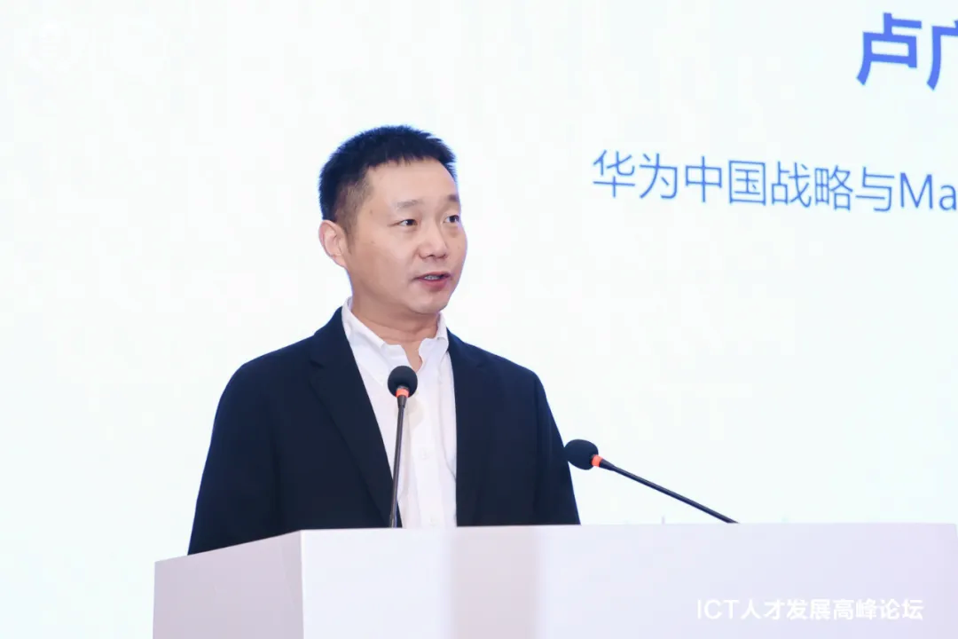 华为中国战略与Marketing部部长卢广致辞时表示,人工智能的国际竞争关键是人才数量和质量的竞争,目前各国都在积极抢占全球人工智能技术主导权,我们应加强产教融合,通过产业驱动,将高校与人工智能实际应用相结合,持续构建面向数字未来的ICT技术人才生态。