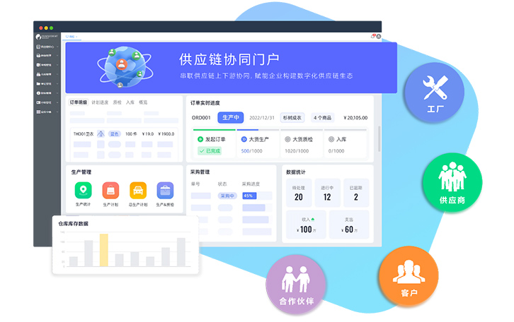 ·供应商门户支持产品询价、竞价模式,跟单协同、工厂新品推荐,工厂开票通知等,紧密链接供应商,保证订单交期,从容应对突发情况;