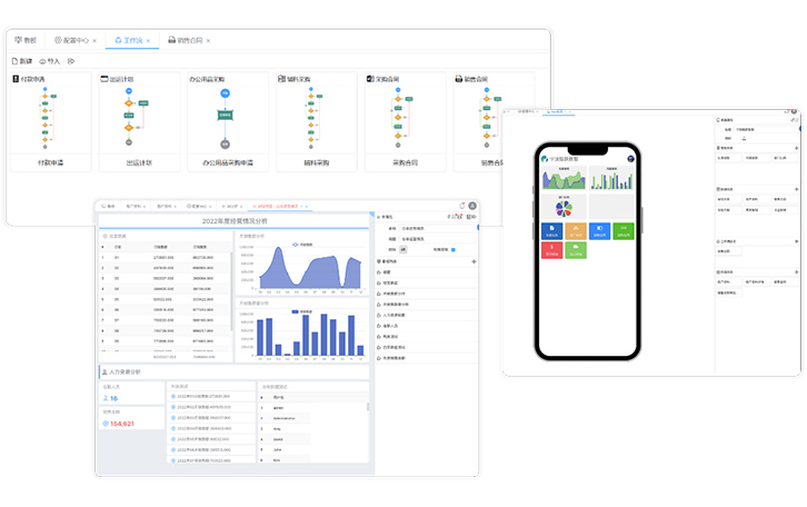 ·App功能自定义配置,支持各种场景的移动应用,如移动验货、PDA出入库、移动报价、移动审批等;