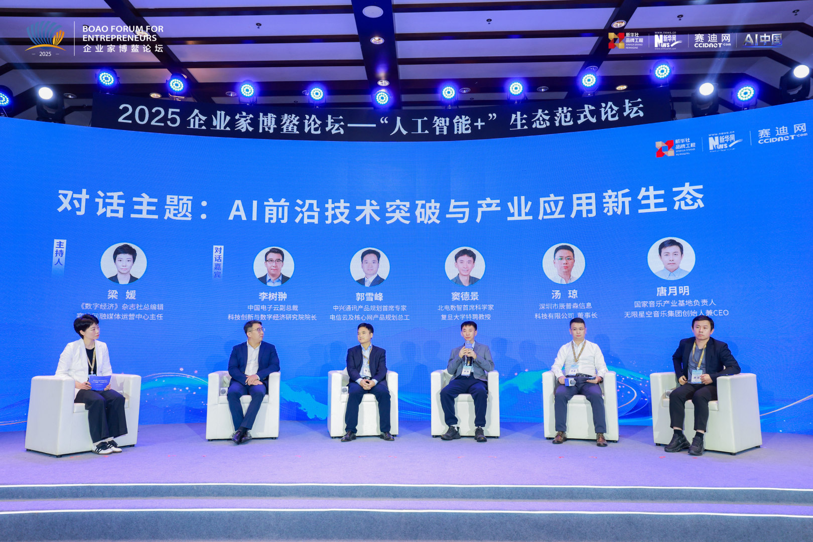 12月3日,2025企业家博鳌论坛“人工智能+”生态范式论坛的核心环节——“AI+:技术向善,产业向新”圆桌对话,在博鳌迎来了技术与产业的思想热潮。本次圆桌对话由《数字经济》杂志社总编辑、雷竞技app下载安卓 融媒体运营中心主任梁媛主持,汇聚了中国电子云副总裁、科技创新与数字经济研究院院长李树翀,中兴通讯产品规划首席专家、电信云及核心网产品规划总工郭雪峰,北电数智首席科学家、复旦大学特聘教授窦德景,深圳市辰普森信息科技有限公司董事长汤琼,国家音乐产业基地负责人、无限星空音乐集团创始人兼CEO唐月明五位行业领军者,围绕“技术向善,产业向新”这一核心主题,共同探讨AI技术突破与产业融合的深层逻辑,给出了兼具高度与落地性的思考。